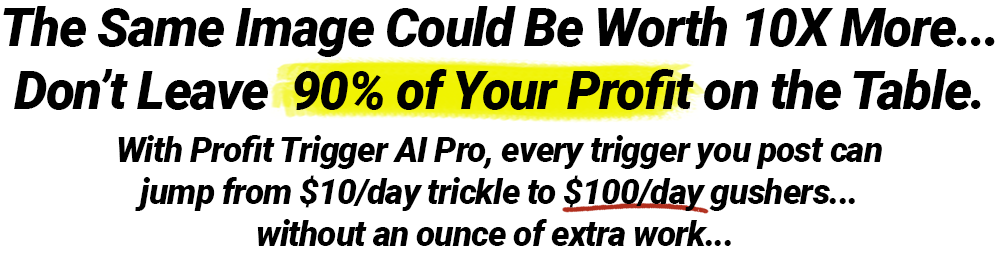 The best time for you to use the small tweaks in Pro is right away to increase the results you get from Profit Trigger AI exponentially. (Read on to see just how fast this scales to $10,000... then to $100,000 per month in profits for the same amount of work)